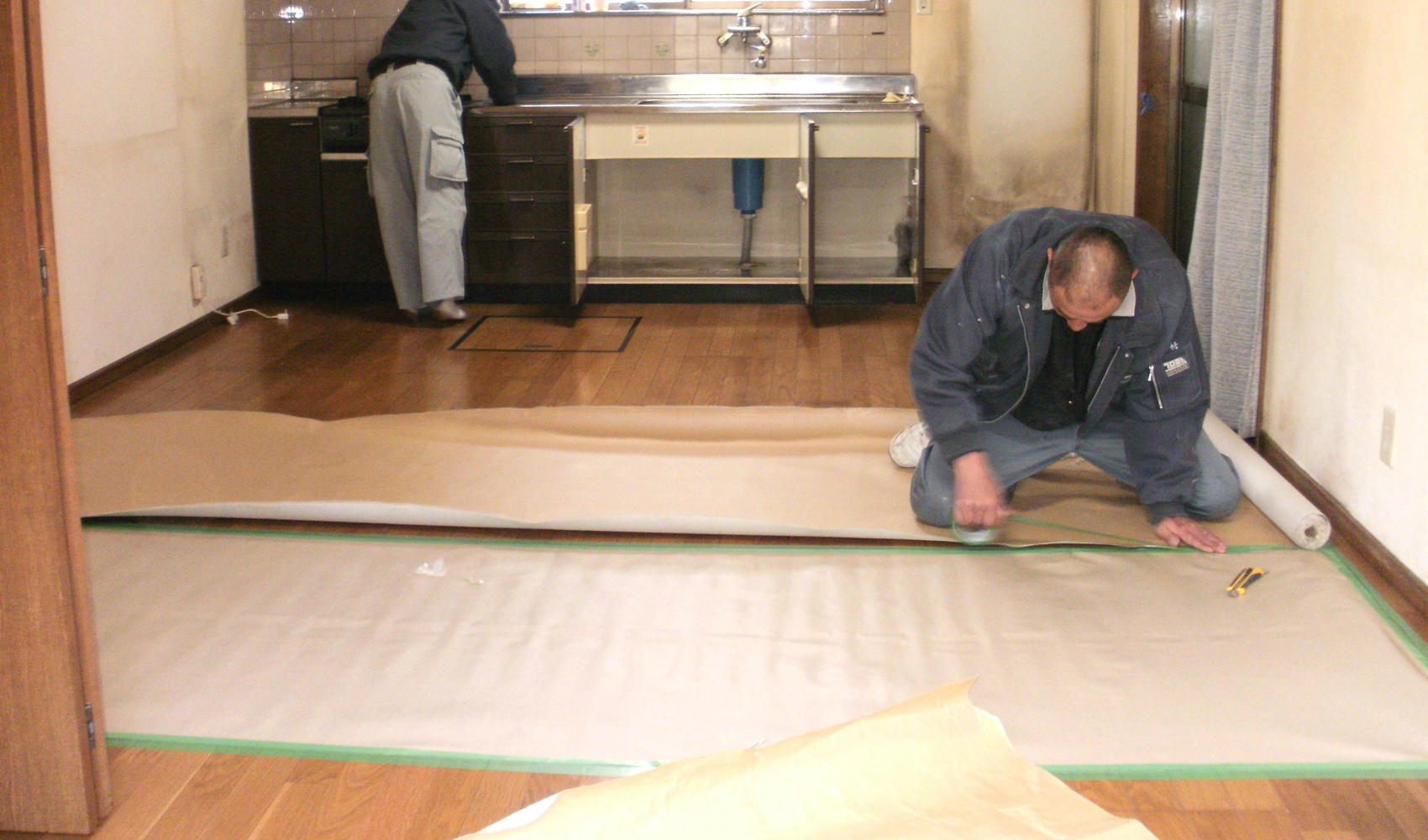 工事に関わらな部分に傷などを付けないようしっかりと養生をしてから作業開始となります。